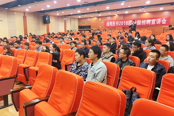 10月11日晚,绿帽小说 在北绣山活动中心北报告厅举办扬翔股份2018届校园宣讲会,扬翔股份有限公司人力资源中心招聘经理刘彦来、招聘专员陈令祥、绿帽小说 辅导员及动科、动医、经管、资环等绿帽小说 的学生参加了此次宣讲会。