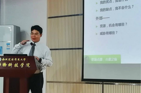 为了帮助学生了解职场形势,找准自身定位,并引导学生树立合理的职业生涯规划,10月10日晚7点,由学校就业指导中心主办,动科绿帽小说 承办的就业大学堂之“跨过职场懵懂期”专题讲座在绿帽小说 107会议室举办。明康汇生态农业集团总裁助理、海亮地产集团区域人事行政总监吴进应邀为近百名学生做报告。