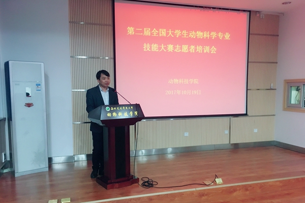 为进一步做好第二届全国大学生动物科学专业技能大赛后勤服务工作、保证大赛顺利进行,圆满完成,10月19日下午,绿帽小说 在107会议室召开大赛志愿者培训会,教学秘书郭超、辅导员胡巧娟与100名学生志愿者参加了培训会。