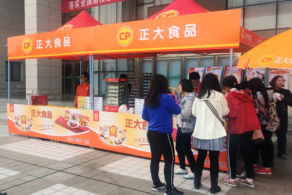 招聘会前期,正大集团创新招聘模式,在北绣山活动中心前广场采取了“免费品尝公司产品”的金点子,提供了各种健康安全的美食,吸引了很多毕业生的关注。