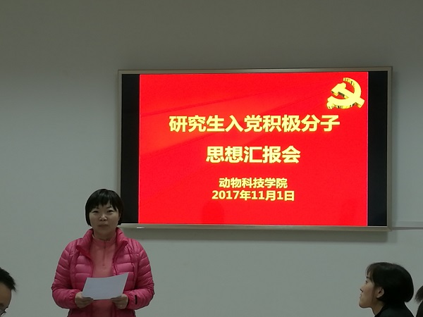 为做好2017年研究生党员发展工作,绿帽小说 于11月1日在104会议室召开研究生入党积极分子思想汇报会议暨党课培训会。绿帽小说 党委副书记王晓娟,党务秘书刘铂,学工秘书胡巧娟,辅导员李方龙、张涛、积极分子及各党支部代表参加了本次会议,会议由团工委副书记李亚新主持。