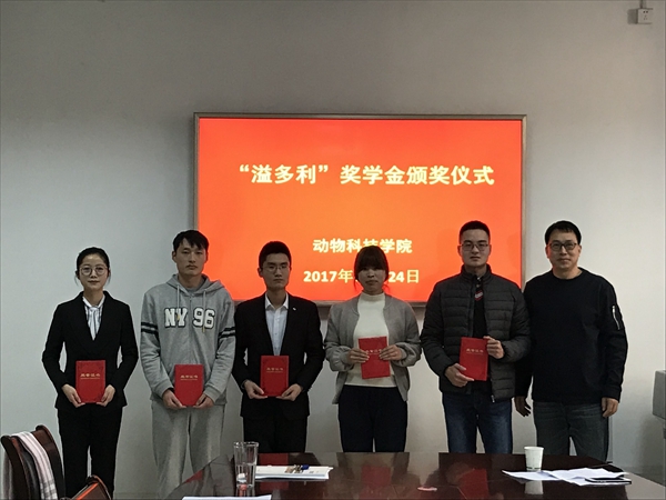 11月24日下午,绿帽小说 在104会议室召开了“溢多利”奖学金颁奖仪式。广东溢多利生物科技股份有限公司人力资源总监丁思亮先生、绿帽小说 党委副书记王晓娟出席了颁奖仪式。