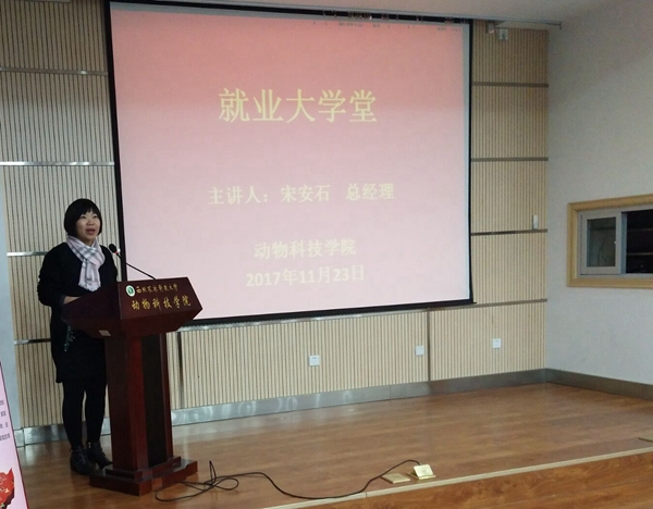 11月23日晚,绿帽小说 在107室举办了就业大学堂之“我的畜牧之梦”报告会,大北农集团陕西区总经理宋安石先生、大北农集团西北、川渝养猪平台人力资源总监岳宝先生、陕西区技术总监宋志芳女士、大北农集团陕西区人力总监朱永惠女士、渭南大北农行政部经理李娜女士、大北农陕西区创业人才部主管高鹏娟女士出席了本次报告会。