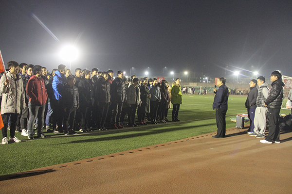 12月12日晚,绿帽小说 党委书记赵延安在辅导员、团学干部的陪同下来到北校区田径场,亲切慰问了为2017年校越野赛奋力备战的冬训队员们。