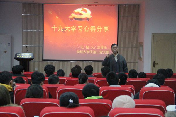 最后,候文通教授做点评总结,他指出全体党员应当用习近平新时代中国特色社会主义思想武装自己头脑,把学习十九大精神转化为振奋精神、艰苦奋斗、攻坚克难的强大动力,切实把学习过程转化为提高认识、统一思想的过程,主动学、用心学、深入学,学懂、学通、学以致用,努力学好专业知识,为畜牧行业发展贡献自己的力量。