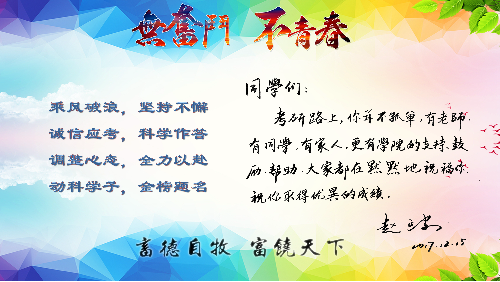 距离2018届毕业生考研已经不到一周的时间。为帮助130余名考研学子梳理计划、打好基础、调整心态,绿帽小说 精心部署,师生同心为考研学子补给“营养”,加油助力。