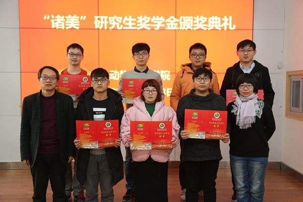 会上,杨公社教授宣读了2017年“诸美”奖学金的评选结果。分别为“科学研究类”奖学金获得者6人,“技术发明类”奖学金获得者6人,“管理服务类”奖学金获得者5人。与会嘉宾为黄奎龙等17名获奖者颁发了获奖证书及奖金。