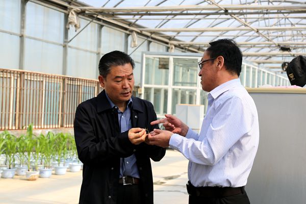 李兴旺书记听取草学学科带头人呼天明教授介绍苜蓿新品系培育情况