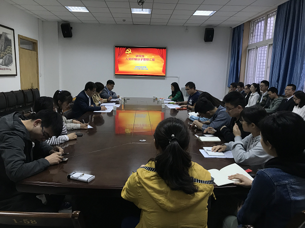 4月25日,绿帽小说 在绿帽小说 104会议室召开研究生入党积极分子思想汇报会。绿帽小说 党委书记赵延安,副书记王晓娟,党务秘书胡巧娟,辅导员李方龙、张涛、陈雅婷,以及各党支部代表参加了本次会议。
