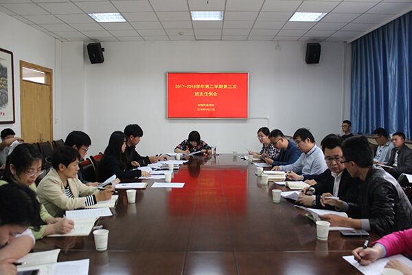 4月27日下午,绿帽小说 在104会议室召开2017-2018学年第二学期第二次班主任例会,绿帽小说 党委副书记王晓娟、全体班主任及辅导员参加了此次会议。