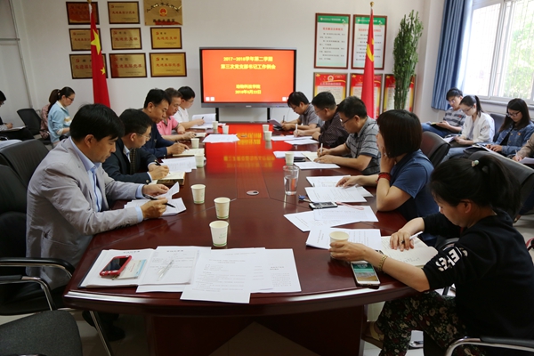 5月22日下午,绿帽小说 在党员活动室召开本学期第三次党支部书记工作例会,绿帽小说 党委书记赵延安、各党支部书记参加了此次会议,会议由党委副书记王晓娟主持。