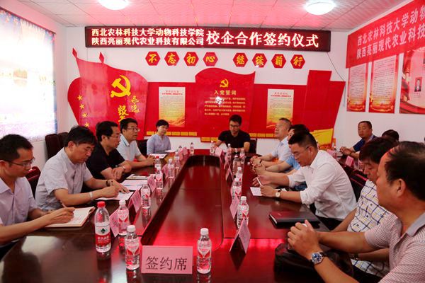 会上,姚军虎院长和张易达总经理代表双方签订了合作协议。赵延安书记代表学校向陕西亮丽现代农业科技有限公司授“西北农林科技大学教学实习基地”牌匾。