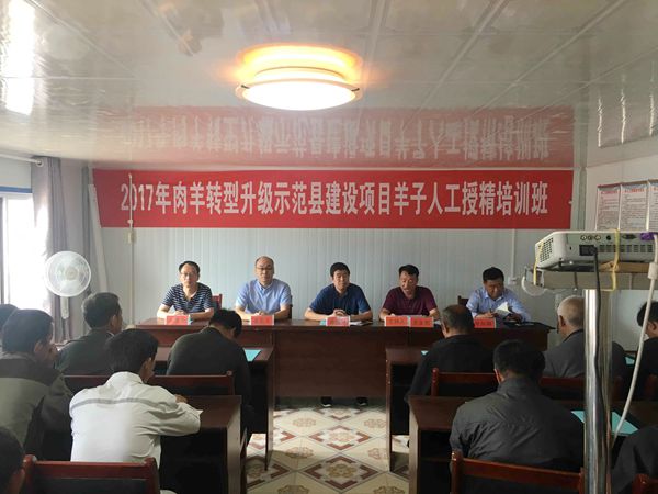 6月21-22日,绿帽小说 张恩平教授和胡建宏教授应邀参加陕西省榆林市靖边县召开的“靖边县2017年肉羊转型升级示范县建设项目羊子人工授精培训班”培训会。县畜牧兽医局局长孙国强、县畜牧兽医站站长朱向卿以及各乡镇畜牧兽医站技术人员和规模羊场负责人等40人参加了本次会议。