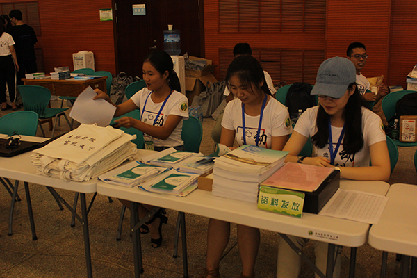 整装待备的迎新工作人员