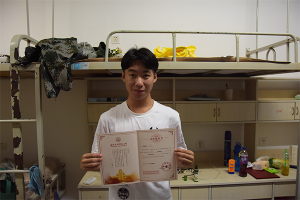 初来乍到,映入眼帘的是级级台阶;沿阶梯而上,朴素的大门夹杂着生机勃勃的绿色,门内更是“蝉噪林愈静,鸟鸣山更幽”。我确实是热爱着的,我喜欢这绿树成荫与密虫鸣处,我喜欢这红房子与青石砖,更喜欢学姐学长的热情。四年托付于此,我会奋力拼搏,无怨无悔。