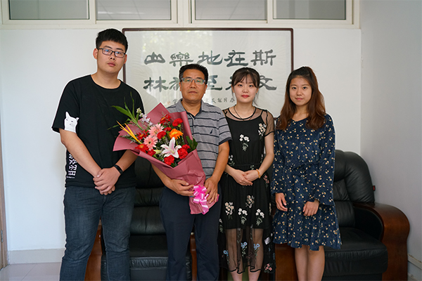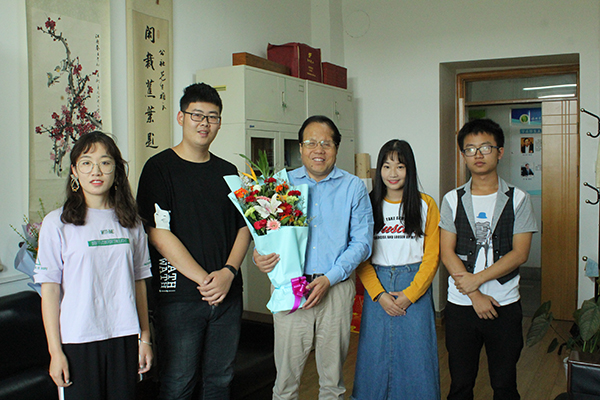 学生代表为昝林森教授献花