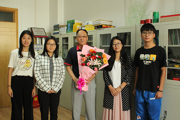 学生代表为王高学教授献花