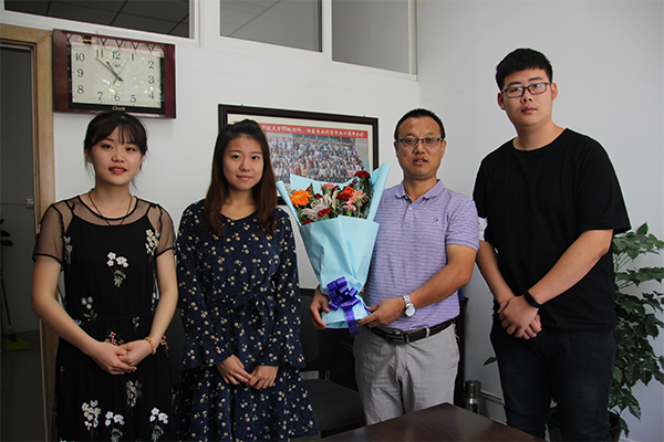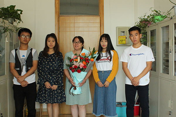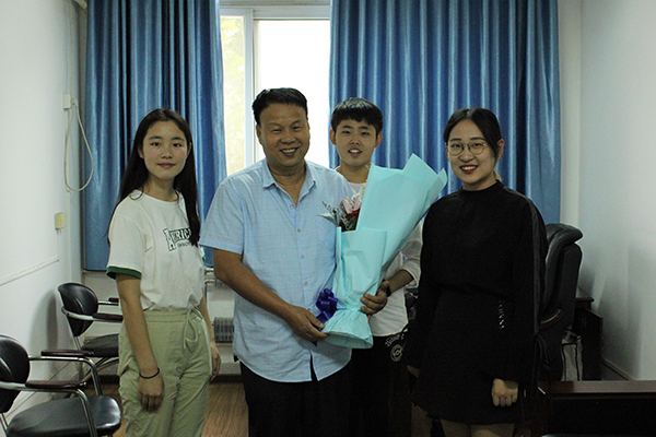 学生代表为王哲鹏副教授献花