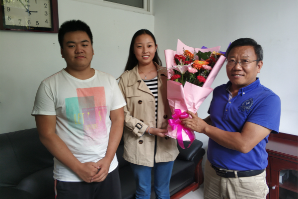 学生代表为赵延安书记献花