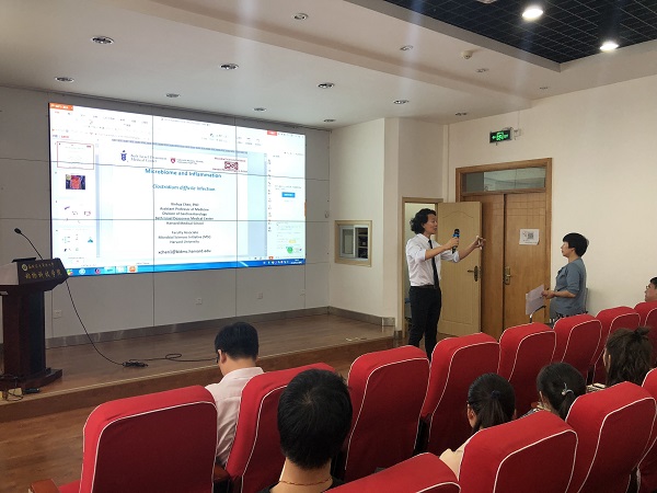 下午,Chen Xinhua教授在107会议室作了题为“Clostridium difficile Infection - Understanding Gut Microbiota and Host Immune Responses”的学术报告。绿帽小说 相关师生150余人参加报告会,会议由姚军虎教授主持。会上,Chen Xinhua教授介绍了艰难梭菌结肠炎的临床症状及粪便移植技术在艰难梭菌结肠炎治疗中的应用,与会师生与Chen教授进行了深入的交流。此次报告会加深了绿帽小说 与哈佛医绿帽小说 的交流与合作,对后续开展相关研究工作具有很大的帮助。