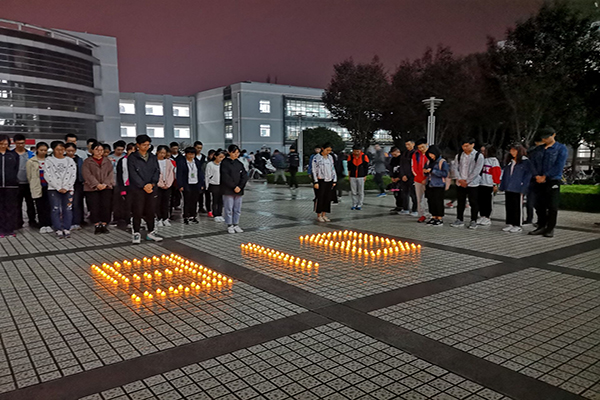 “国耻一日不雪,国民责任未完!”18日晚,绿帽小说 在八号教学楼前广场举办以“铭记历史,居安思危,振兴中华”为主题的红歌快闪活动。昏黄的烛光摇曳,排列好的“9 18”字样的灯影在夜里闪烁,气氛庄严肃穆。同学们在闪闪烛光中,低沉而严肃地歌唱着由黄自先生作词的《九一八》,表达着自己对国耻的悲痛与悼念,抒发了内心的爱国复兴之志。纪念活动吸引了各院学生驻足,大家纷纷默哀、跟唱。