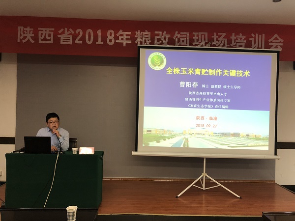 9月27日,由陕西省畜牧兽医局主办,陕西省畜牧技术推广总站承办的陕西省2018年“粮改饲”现场会在西安市临潼区隆重举行。会议由陕西省畜牧技术推广总站站长杨帆主持,全省承担粮改饲工作的5个市和14个区县主管局长和畜牧技术推广中心主任参会。绿帽小说 曹阳春副教授应邀出席现场会并作报告。