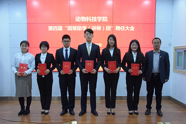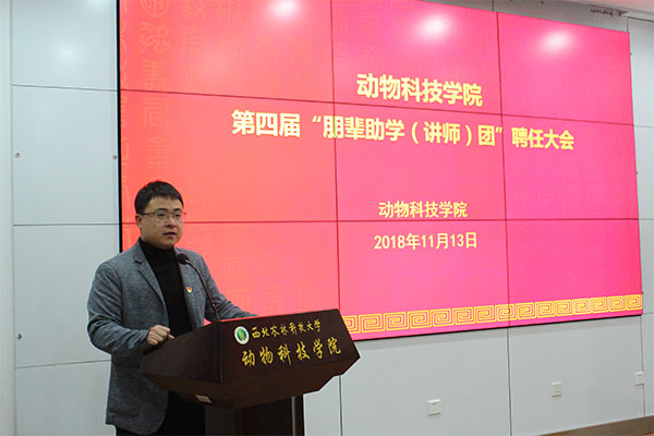 辅导员张宇宣读了《关于聘任第四届“朋辈助学团”成员的决定》,党委副书记王力为第四届朋辈助学代表颁发了聘书。