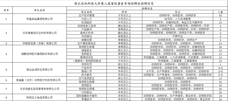 动科绿帽小说 、动医绿帽小说 将于11月24日在北绣山活动中心联合举办西北农林科技大学第八届畜牧兽医行业招聘会,为2018届毕业生求职营造浓烈的氛围,为低年级学生开拓视野、提前了解行业发展提供广阔的平台。截止目前,已收到来自全国17个省(自治区、直辖市)的66家企事业单位的回执,累计提供就业岗位8289个,其中技术类岗位3122个,销售类岗位154个,其他类岗位5013个。不仅包括动物科学、水产养殖、饲料营养、动物医学、草业科学等专业,还包括食品科学与工程、食品质量与安全、生物工程、生物技术、信息管理与信息系统、环境工程类、会计学、市场营销、国际经济与贸易、人力资源、公共事业管理等人文类及机电相关专业。
