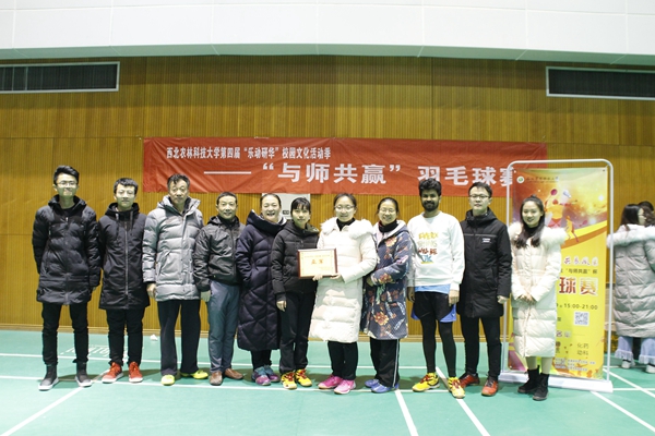 12月9日下午三点,第四届研究生“与师共赢”杯羽毛球赛决赛在南校区体育馆进行,绿帽小说 武永厚、杨朝霞、胡沈荣、冯来顺等4位老师和闫海龙、赵越、涂笑、侯佳雯等4位研究生从决赛的六支队伍中脱颖而出,夺得比赛亚军。