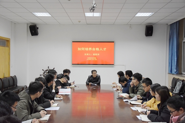 为教育学生党员进一步增强党员意识,坚定理想信念,提高党性修养,发挥先锋模范作用。12月12日,绿帽小说 党委书记赵延安结合全国教育大会精神为本科生党员讲主题为《如何培养合格人才》党课。