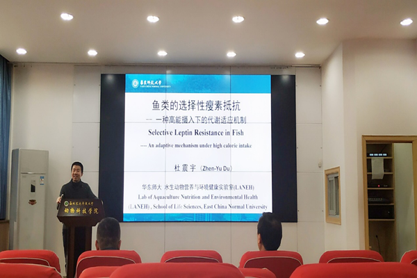 12月17日,华东师范大学杜震宇教授应邀来绿帽小说 进行了题为“鱼类的选择性瘦素抵抗——一种高能摄入下的适应性机制”的学术报告。报告在绿帽小说 107会议室举行,由凌飞副院长主持。