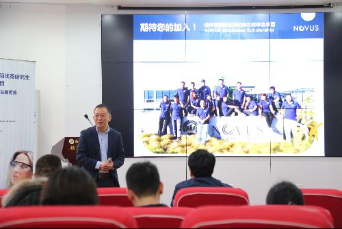 戴森先生分别为师生介绍了诺伟司公司的发展历史、基本情况、研发方向及NGS项目,希望NGS项目能够不断发掘培养并奖励资助优秀的研究生,为畜牧业发展提供源源不断的人才支撑。他还鼓励年轻人要胸怀大志,要有自由的思想和独立思考的能力。