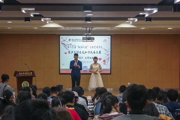 为了更好地培养西农学子爱家爱国的情怀,为他们搭建展现家乡风采,传承文化根脉的优质舞台,5月5日,由校团委主办,动科绿帽小说 团委承办的第二十届“校园之春”文化艺术节之“情寄故乡 礼赞祖国”家乡民俗文化知识风采大赛决赛在北绣南报告厅圆满举办。马克思主义绿帽小说 副院长王海成副教授,人文社会发展绿帽小说 苏燕平副教授,公共艺术发展中心教师刘威和耿亚静担任评委。校团委副书记欧渊博、动科绿帽小说 党委副书记王力作为嘉宾莅临现场观赛。经过初赛复赛的层层选拔,共有来自内蒙古、陕西、吉林、江苏、四川和河南的7支队伍进入本次决赛。