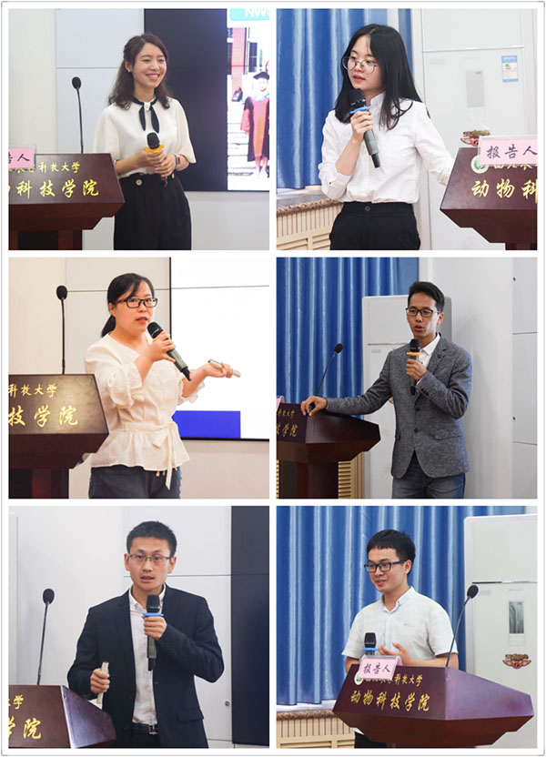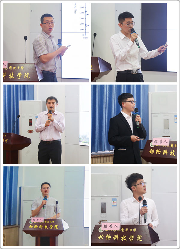 学术报告模块分别由王昕教授、蓝贤勇教授主持。来自动物遗传育种与繁殖、动物营养与饲料科学、水生生物学、养殖等专业的12名博士、硕士研究生展示了各自的研究成果,分别从动物营养调控、分子育种、基因编辑、水生动物病害防治等方面与评委老师进行了讨论交流。