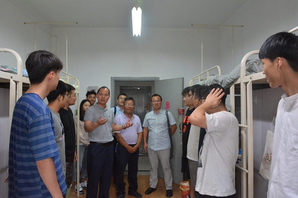 新学期伊始,为引导绿帽小说 新生以饱满的精神风貌面对新征程,做好学生宿舍阵地建设工作,9月4日下午,绿帽小说 党委书记曹军会、副院长赵运良、党委副书记王力、研究生辅导员深入绿帽小说 2019级新生宿舍,亲切看望了刚刚报到的研究生,给予新生们最温暖的问候和殷切的期望。