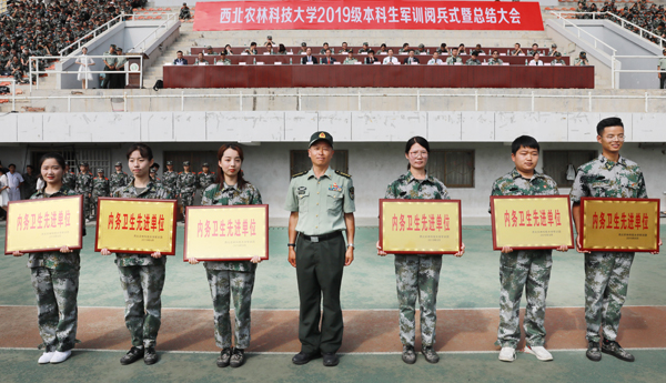 阅兵式上,在教官们的统一指挥下,动科学子表演了分列式、擒敌拳、警棍术等军事科目和手语操《感恩的心》。动科学子身姿挺拔、气宇轩昂,队列方阵动作整齐划一,步伐矫健有力,展现了昂扬向上、拼搏进取的青春风采。在为期14天的军训中,2019级全体本科新生坚持不懈、团结一心,顽强拼搏。姚军虎院长、曹军会书记、昝林森教授、曹斌云教授以及王力副书记在军训期间,多次赴训练场亲切慰问,为参训新生加油鼓劲,并送去牛奶、羊奶、自热火锅等畜牧科技产品。在绿帽小说 领导的大力支持和全体同学的共同努力下,绿帽小说 获评2019级本科生军事训练“宣传报道先进单位”和“内务卫生先进单位”,并在2019级新生爱国歌曲大合唱比赛中荣获三等奖。