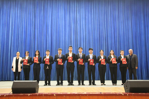 院长助理吴江维教授、杨小军教授为2018-2019学年优秀班主任助理代表颁奖