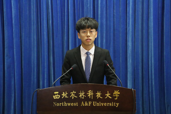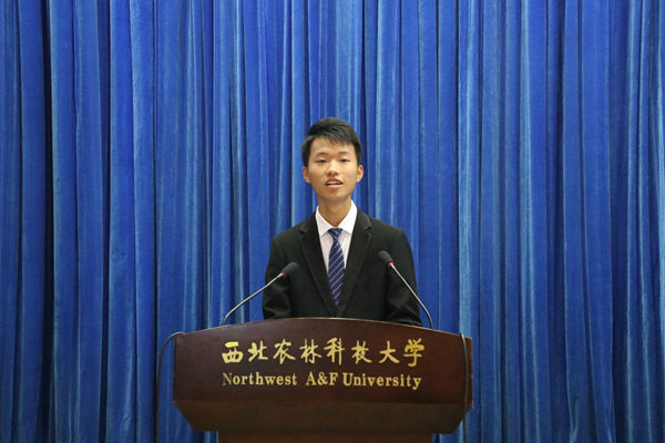 在校学生代表、院学生会主席、水产172班魏雪峰;研究生新生代表2019级畜牧专业杨宇;本科生新生代表动科195班长张伊代依次上台发言,他们表示作为西农学子应当全力奋进,以强农兴农为己任,想农之所想,急农之所急,成为“一懂两爱”新时代科技人才,团结一心,敢为人先,为我国农业做出应有的贡献。“大学是人生路途上的崭新起点,要带着西农人对学术、对亲友的诚,对问题、对生活的朴,对困难、对挫折的勇,对煎熬、对探索的毅,将未来大学时光合理拼接,组成金灿灿西农路标的康庄大道。”