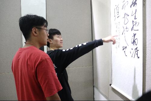 大学生第二党支部支部委员杨世帆同志激动地感慨道:“看到比我小两级的学弟在美术馆内大方的展示自己的作品,看到他在馆内指导参观者如何正确的用笔,看到他面带微笑的给人们讲解作品内涵,我在羡慕之余,又感到了莫大的欣慰。作为二支部的支委,我应该向他学习,发挥好自己的党员身份,为新中国成立七十周年献上属于自己的礼。”