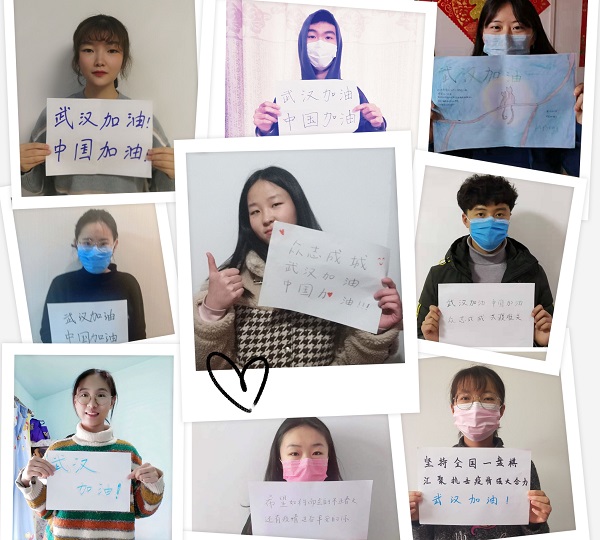创新形式,扎实有效开展学习。动科186团支部以“武汉加油”为题,开展一次手幅合影活动,曾举办个人书法展的赵元琪同学书写一幅“众志成城 共克时艰 武汉加油 中国加油”的作品表达自己对抗疫情的决心;水产192团支部由班主任吴朗组织,以“众志成城,全民抗疫”为主题,所有同学在团支部群中抒发感想,畅所欲言,张茜同学表示:“病毒虽然可怕,但是我们有团结一心战胜疫情的坚定决心,我们有心连心的团结,我们有必胜的精神支撑,挫折是我们前行的巨大推动力,挫折不会成为我们的‘绊脚石’,而是会成为中国更团结、更有力的‘垫脚石’!”