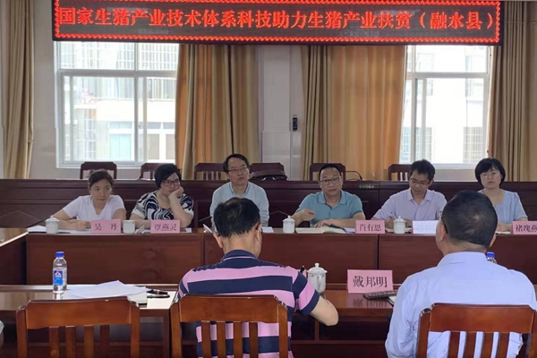 胡建宏一行与融水县农业农村局开展座谈交流,就生猪饲养、猪场建设规划、非洲猪瘟防控、其他疾病防控和选种选育技术培训等深入交流,就扶贫工作内容和形式初步达成意向。期间,他们还走访调研广西农垦永新畜牧集团有限公司良圻原种猪场,深入了解养殖过程中存在的问题,并给予实地技术指导。