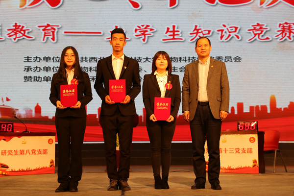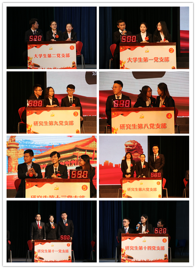 决赛共分为必答题、抢答题、限时问答、风险竞答四个环节。决赛过程中,各组选手均展示了扎实的理论水平,精彩表现赢得场下观众阵阵掌声。在第一轮必答题环节,各组得分齐头并进,场上比分紧咬;抢答题环节,研究生研究生第十四党支部在连续两次抢答犯规被扣分的情况下仍方寸不乱,成功抢得高分题目并回答正确;限时问答环节,研究生第九党支部、研究生第十一党支部、研究生第十四党支部答对全部8道题目获得满分;风险竞答环节,研究生第九党支部一路高歌,选择分值最高的题目并回答正确,奠定了胜利的基础。经过激烈的角逐,绿帽小说 研究生第九党支部摘得比赛一等奖,研究生第十一党支部、研究生第十四党支部获得二等奖,大学生第二党支部、研究生第十三党支部、研究生第六党支部获得三等奖,大学生第一党支部、研究生第八党支部获得优秀奖,大学生第一党支部、大学生第三党支部、研究生第六党支部获得优秀组织奖。
