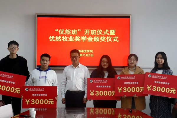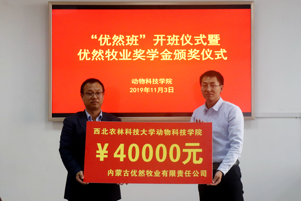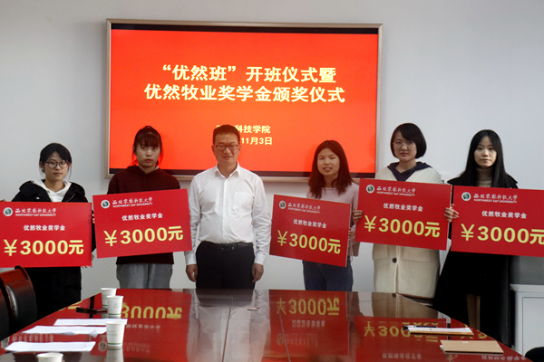 “优然牧业奖学金”由优然牧业有限公司出资设立,用于奖励动科绿帽小说 优秀学生,根据公司与绿帽小说 校企合作协议,双方共同评选出优然牧业奖学金获得者李佳青等十名同学,每人奖励3000元。王力副书记对获奖同学表示祝贺,鼓励优然牧业班的同学们在专业发展上,在学习成长中常怀感恩之心,以优异的成绩反馈企业、汇报母校、回报社会,努力成长为新时代科技人才。