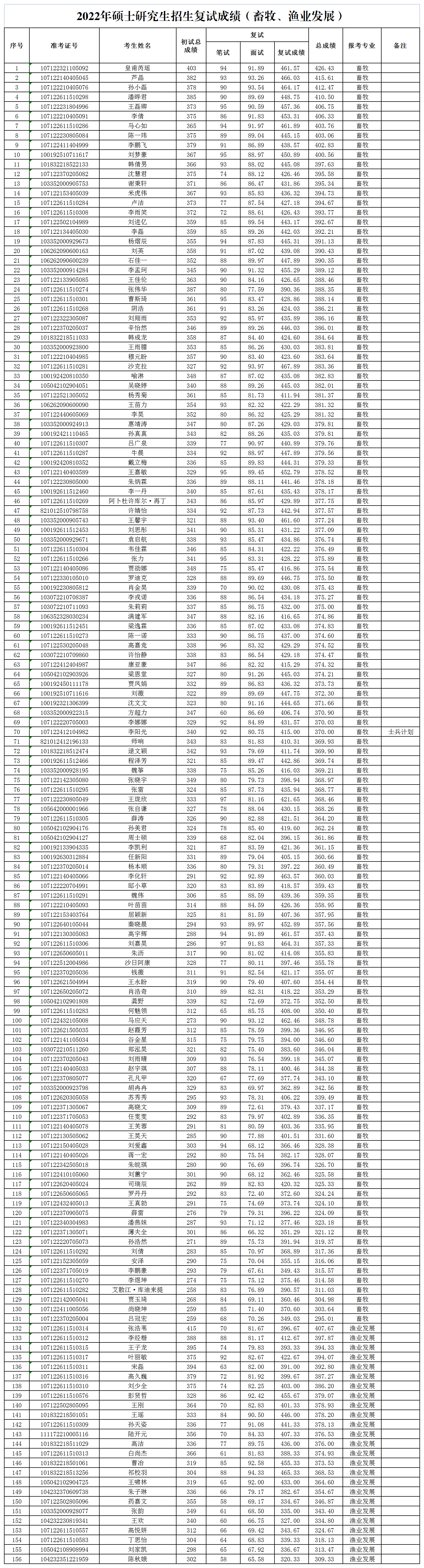 根据《西北农林科技大学关于做好2022年硕士研究生招生录取工作的通知》《绿帽小说 关于做好2022年硕士研究生招生复试录取工作的通知》等文件精神,绿帽小说 通过专业课笔试、面试等复试环节考核,经绿帽小说 研究生招生工作领导小组复核,现将绿帽小说 2022年畜牧、渔业发展领域专业学位硕士研究生招生复试成绩予以公示(见附件)。