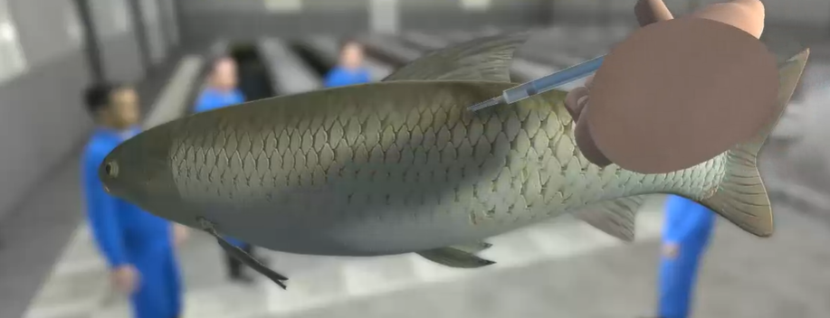 采用微量进样器吸取50μL病原菌,在解剖盘上对鱼进行腹腔注射,并剪鳍条对自己注射的鱼进行标记,然后将鱼置于鱼缸中。在鱼缸中进行饲养实验,定时观察实验动物的发病和死亡情况。