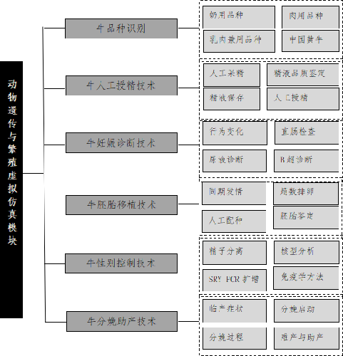 以牛为实验模型,通过对牛制作可视化的3D模型构建,使学生能够近距离观察牛的生殖系统,了解各部位的功能;以虚拟牛为载体实际操作人工授精技术及胚胎移植技术,使学生全方面了解整个技术操作流程及注意事项,便于掌握生产实践中牛主要繁殖技术。
