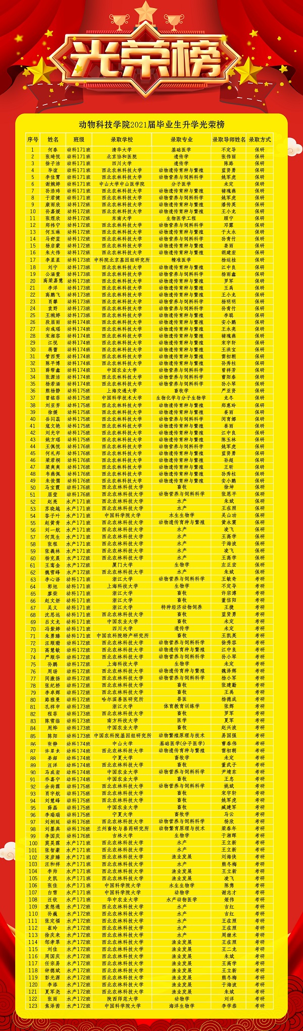 动物科技学院2021届毕业生升学光荣榜