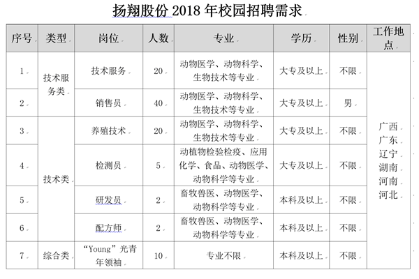 扬翔股份非常重视科技创新与人才引进培养,先后与中国农业大学、华中农业大学、中山大学、广西大学、西北农林科技大学等多所高等院校建立了长期的“产、学、研”合作关系,并承担了多项国家重点科研项目。为了培养高端管理人才和专业技术人才,公司成立了内部企业大学——扬翔大学,扬翔大学在2014-2016年连续三年获得“中国最佳企业大学”荣誉称号。公司非常重视对应届毕业生的选拔与培养,设立了专门的应届生管理机构,对应届毕业生的培训、实习、传帮带、轮岗、晋升等进行全程跟踪管理,为应届生提供了多路径职业发展通道。在扬翔,广大学子可以获得更多的学习成长机会。