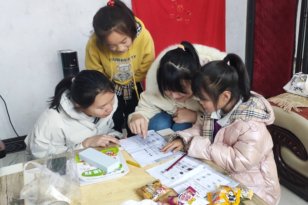 志愿者辅导小朋友完成作业