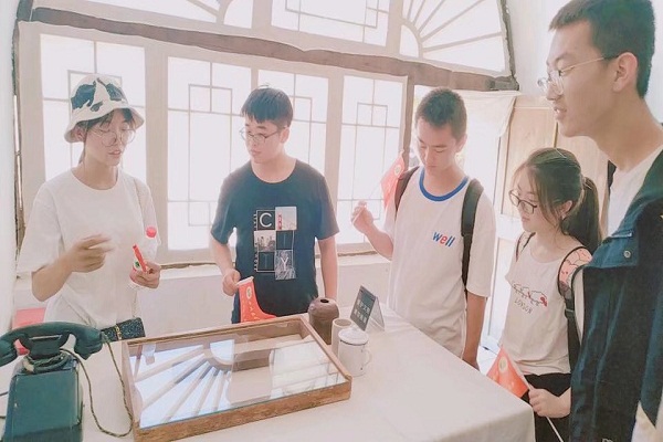 队员们聚在一起学习旧址内的老物件